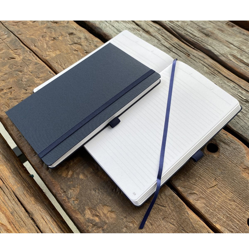 Continuing with Castelli’s sustainable centric design, the Oceano notebooks are made from recycled bottles. Crafted and repurposed into a high-quality textile fabric covers and combined with 100% high-quality recycled paper pages (160 in total). Available in a striking range of colours and featuring high quality white recycled pages with grey dotted ruled format and page numbering and indexing. The cover has been engineered from 100% recycled materials yet maintaining superior branding credentials with full colour digital print, foil or blind embossing options. This notebook boasts a colour coordinated elasticated closure band and pen loop, together with a colour-matched ribbon marker.