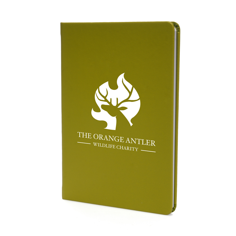 Embrace sustainability with our A5 notebook featuring a hardcover made from apple skin, an eco-friendly leather alternative sourced from food industry waste. With 128 lined FSC certified pages, it combines functionality with environmental consciousness, showcasing the apple skin logo on the cover and eco credential logos within.