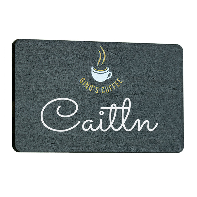 A choice of 4 standard badge shapes and sizes including oval. Standard bar pin or metal clip and pin fitting. Supplied with liquid chalk pen at additional cost.