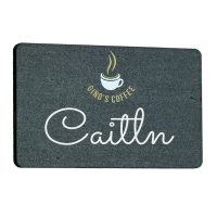 Black coated aluminium name badges designed for use with liquid chalk pens.