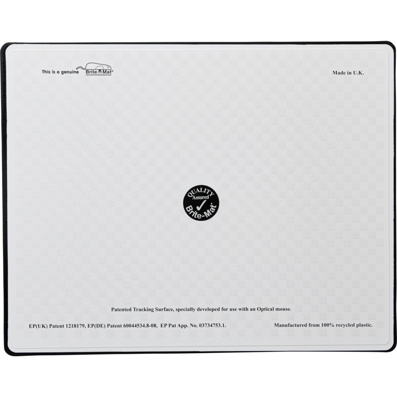 Brite-Mat® rectangular mouse mat. One of the bestselling hard top mouse mats on the market. It offers unrivalled quality due to our patented in-mould labelling technique. It?s moulded from 100% in-house recycled plastics. 100% perfect mouse control for standard balled and optical mice. Laminated paper, Recycled plastic.