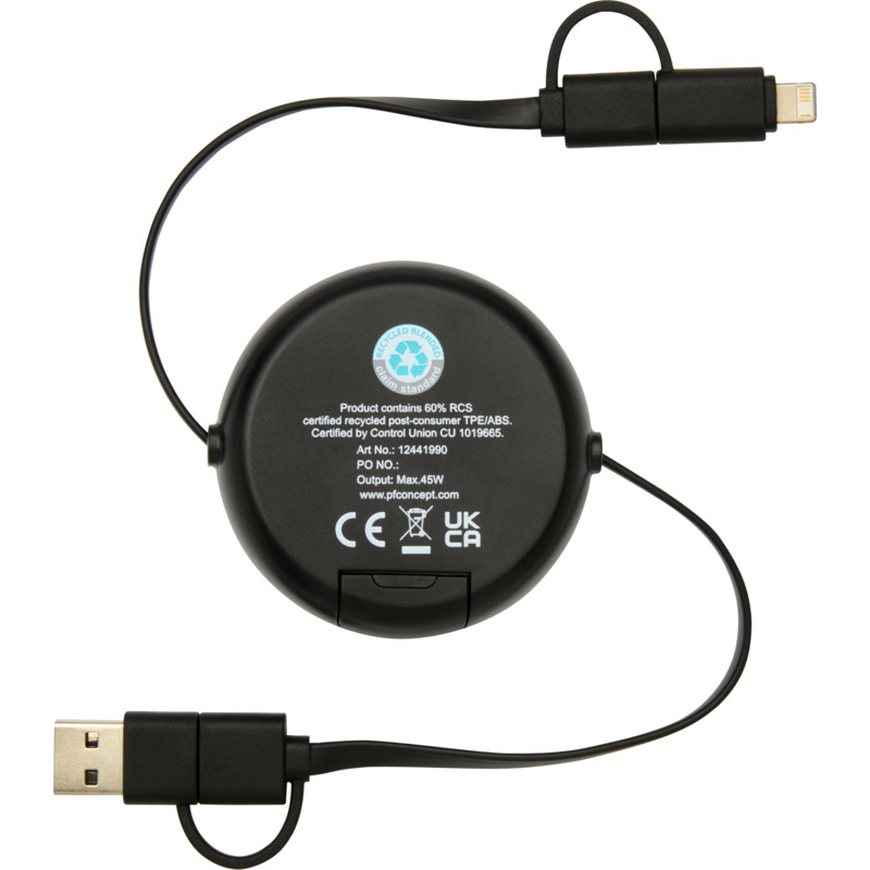 CHECHIA 5-IN-1 RECYCLED PLASTIC 100 CM RETRACTABLE DATA SYNC AND 45W FAST CHARGE CABLE