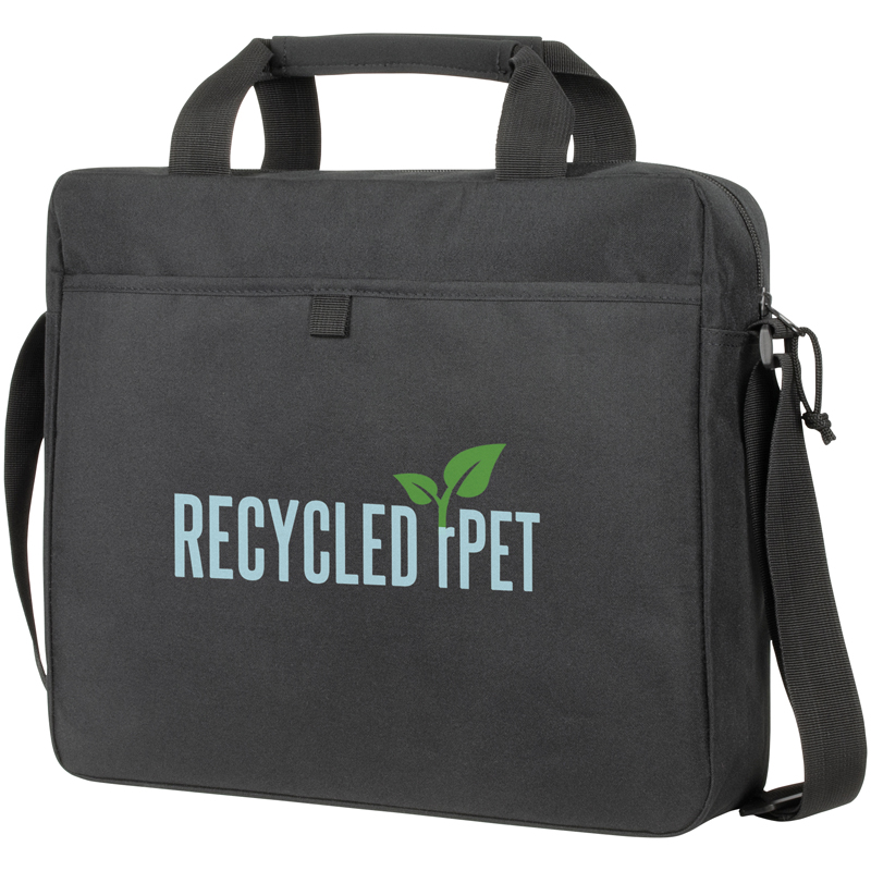 Laptop recycled Business Bag made in 900d Cordura (100% recycled) rPET with PU backing. This bag has a padded compartment for tablet or laptop PC up to 15″ screen size, a front slip pocket and soft neoprene wrap carry handles
