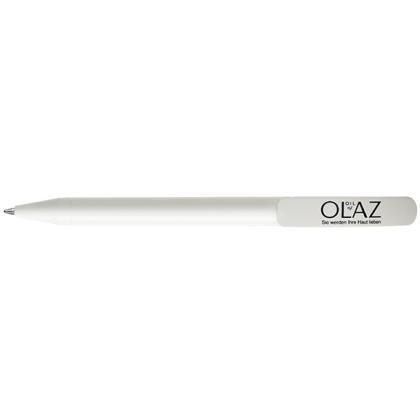 DS3 Twist action ball pen in matt finish. Made with 100% recycled plastic and embossed with International recognised recycled symbol. Available in white and black. Mix and Match facility. Minimum Quantity: 500.