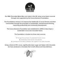 Our Baton Bars are made in house in our chocolate factory and are 41% cocoa.
