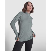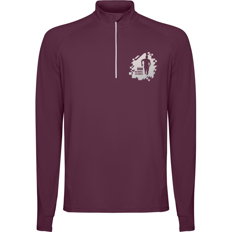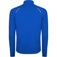 Long-sleeve technical raglan sweatshirt for men. Collar with a half zip inverted design featuring reflective details. Reinforced seam covers. Cuffs with thumb openings. Reflective details on the back. Back hem slightly longer than the front. Warm brushed inner fabric. Knit of 88% Recycled Polyester and 12% Elastane, 200 g/m2.
