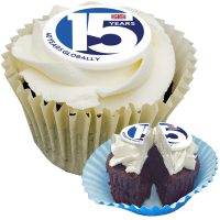Ever popular Cupcakes, either Frosted or Filled with a swirl of flavoured frosting, and available in a selection of case colours. Now also available filled and iced and wrapped individually in eco-film. Full colour edible image Available in bulk, individually wrapped or in a range of giftboxes, or postal packs