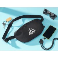 Practical hip bag made from recycled material. The outside of this bag is made from 600D RPET polyester. The inside is made from RPET PVC. This hip bag has a zipper and an adjustable strap with a plastic click closure. Ideal for storing personal items during sporting activities, holidays or festivals. Capacity approx. 1.5 litres. GRS certified. Total recycled material: 96%.