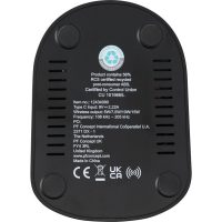 The Loop 15W dual coil wireless charging stand made from RCS recycled plastic is an asset for any desk or nightstand. The stand is equipped with a rubber anti-slip base to prevent the device from sliding off. Thanks to the dual coils, a wireless compatible device can be powered quickly in both portrait and landscape orientation. Compatible with all Qi enabled devices (iPhone 8 or above and Android devices that support wireless charging). Features built-in FOD (Foreign Object Detection) to identify unwanted objects and ensure a smooth charging process. Supplied with an instruction manual and a 100 cm USB-A to Type-C charging cable, and packed in a 100% recycled kraft paper box. Some phone covers/cases might impact the wireless charging capability. Recycled ABS Plastic. Packaging: FSC Recycled 100% P5.1 CU-COC-877277.
