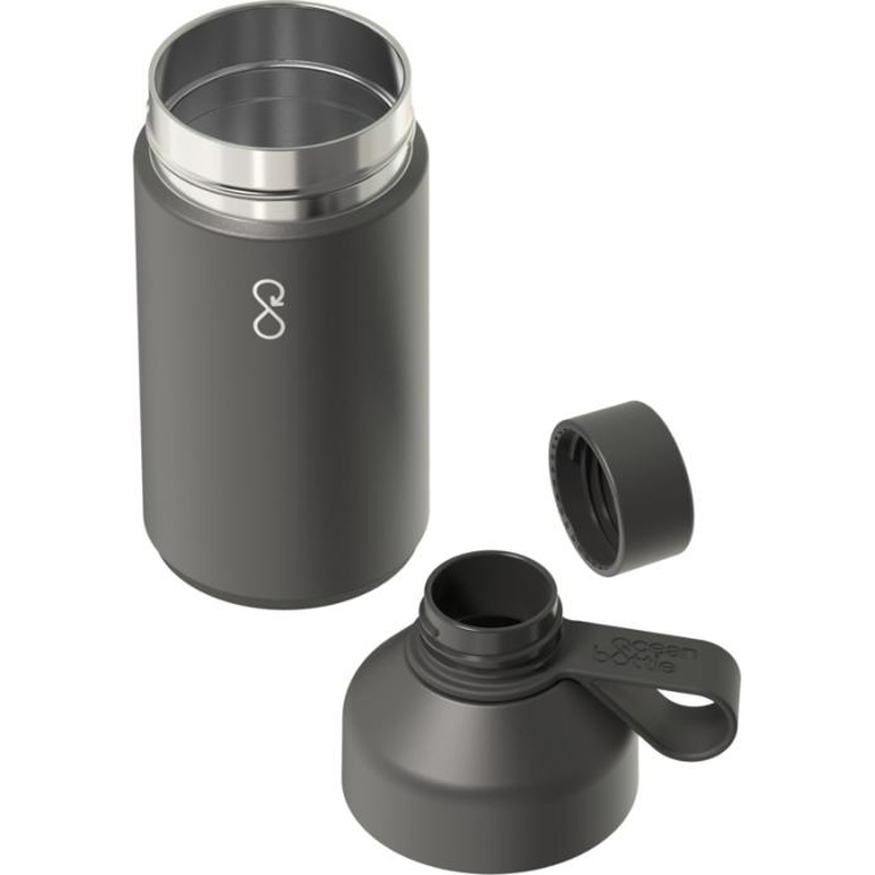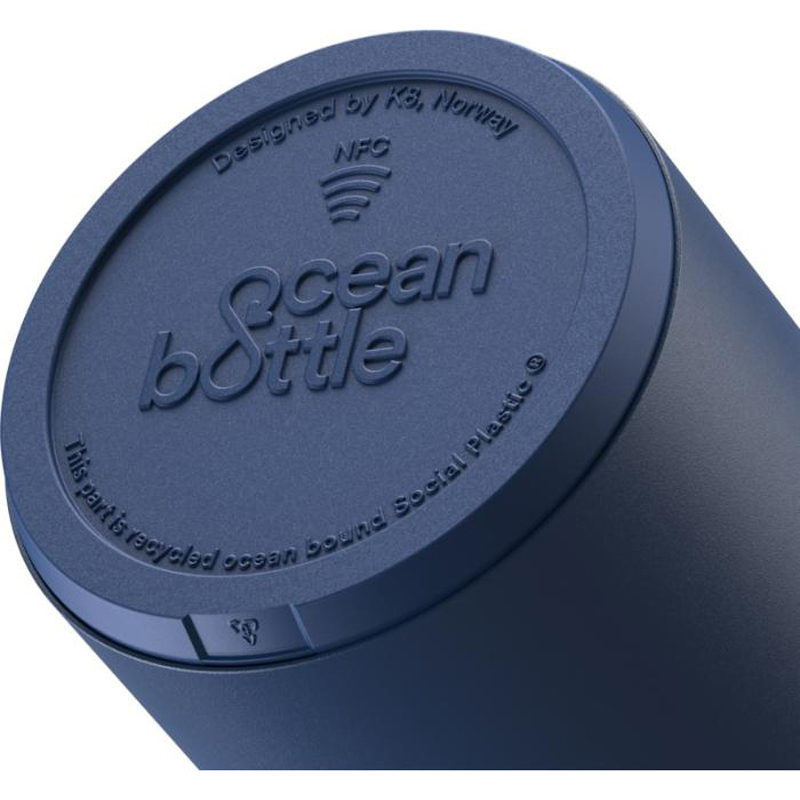 The 750 ml Ocean Bottle has double wall vacuum insulation to keep drinks hot for up to 6 hours and cold for up to 18 hours. Each Ocean Bottle collects 1,000 plastic bottles to improve livelihoods in coastal communities. The bottle contains recycled stainless steel and recycled ocean-bound plastic and is NFC Smart Chip enabled to collect more plastic with every refill. The dual opening makes it easy to clean and fill the bottle, and the anti-leak lid has an easy carry loop. The bottle is dishwasher safe and BPA-free. Presented in a responsibly sourced recycled cardboard gift box. 70% Recycled stainless steel and 10% PET Plastic and 10% Recycled PET Plastic and 10% Silicone Plastic.