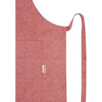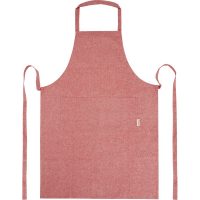 Apron made of 200 g/m² recycled cotton polyester blend. Features 2 adjacent pockets with a combined size of 45 x 20 cm, and a 1 metre tie back closure.