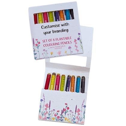 Colour your world without guilt! Eco-Friendly Colouring Pencils 8 pack of mini colouring pencils made from recycled newspaper come in an eco-friendly, plantable seed paper holder in your chosen design. MOQ25