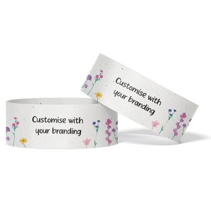 These biodegradable wristbands are perfect for events and promotions. Ditch those plastic sticky luminescent wristbands that are nigh on impossible to remove and go green. Introducing Our Eco-Chic Plantable Seed Paper Wristbands! The perfect addition to your eco friendly festival or sustainable event. These can be made to any wrist size and are available in a range of papers. All come with an adhesive seal.