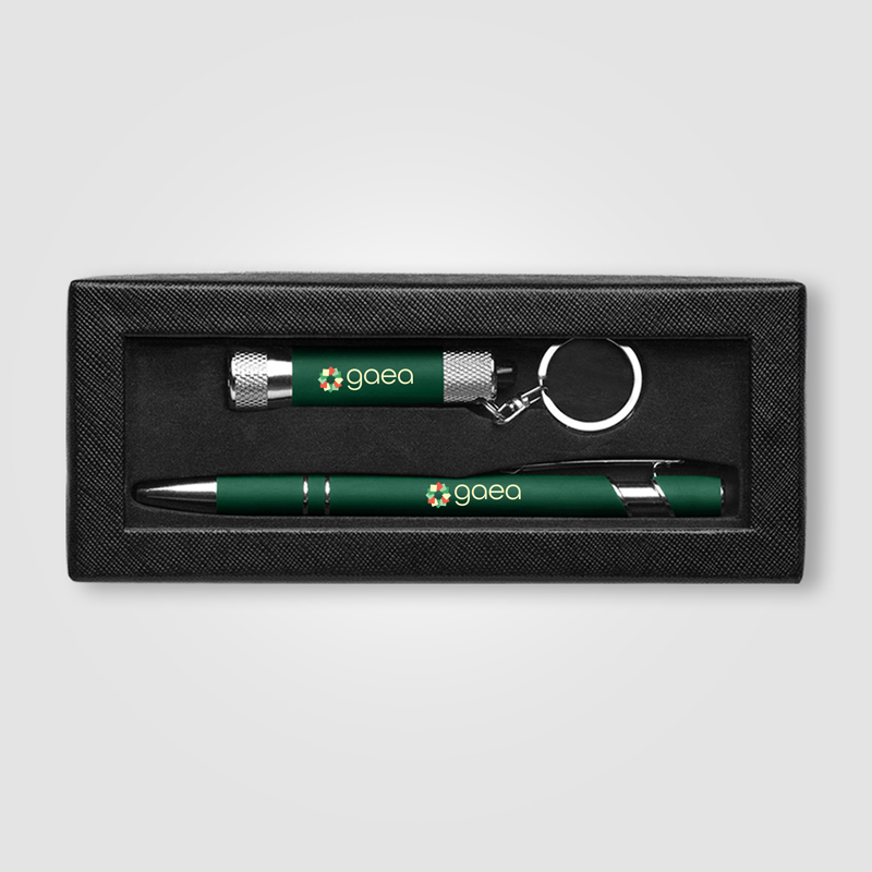 Celebrate loyal customers and tenured employees with a gift that feels substantial. This gift set combines a best-selling pen with a best-selling flashlight. Both come with a soft touch rubberised finish in your choice of matching colours.