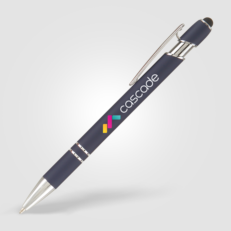 The tactile, soft-touch rubber barrel and handy stylus functionality make this a much desired promotional stylus pen.