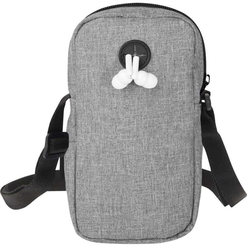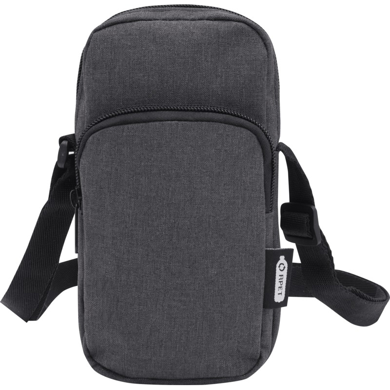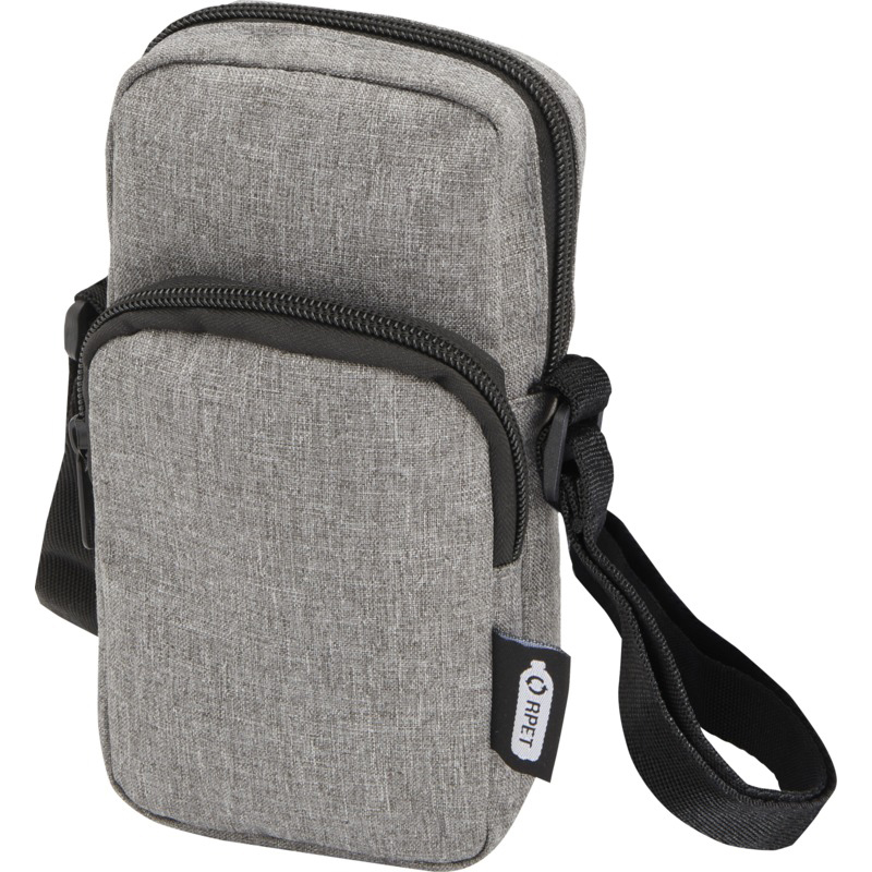 The Ross GRS certified recycled phone pouch keeps your phone safe and provides convenient additional storage with its zipped front pocket for small accessories. With adjustable straps (up to 140 cm), it’s a practical and stylish travel companion for today’s digitalized world. GRS certified recycled polyester.