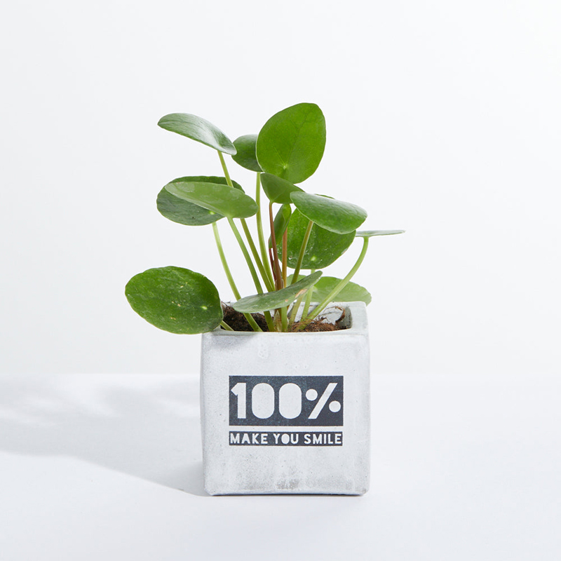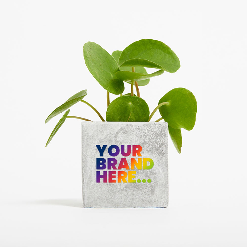 Modern and minimalist. This sustainable pot comes complete and planted with a small random cactus ready to look good in any office or home. Concrete pot with detailed laser engraving to one face. Recyclable. Reuseable.