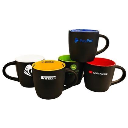 Black matt glazed ceramic mug with contrast bright inside. 6 different colours to choose from – great for brand identity! Also in white matt outside. Size: 86 x 88mm. Capacity: 350ml