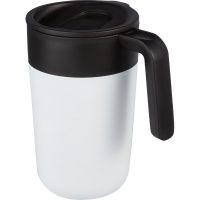 Modern, recycled, stainless steel cup for use with hot or cold drinks. Made from RCS certified (Recycled Blended Claim) stainless steel. For hot drinks, simply flip the lid to reveal the sipping spout. Finished in premium powder coating. BPA free