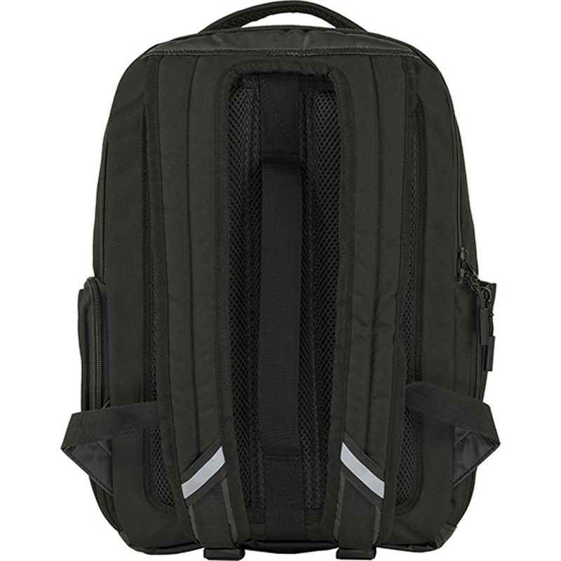 Premium, Eco backpack made from 600d rPET with 300d rPET PU contrasts. This stylish backpack has 3 x compartments, including a padded area for a 15.4 PC. Plus a side pocket for a drink bottle and a key tidy. It has adjustable padded straps with reflective accents front and back.