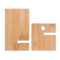 Bamboo phone stand holder. It includes 2 parts, you can assemble it vertically to hold your phone. Bamboo is a natural product, there may be slight variations in colour and size per item, which can affect the final decoration outcome.