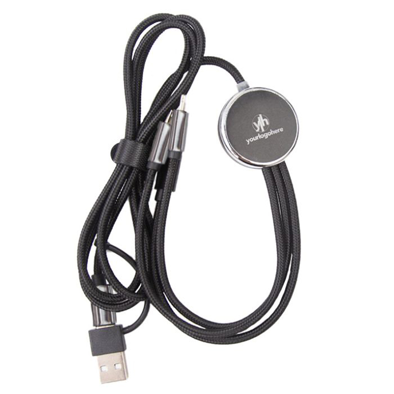 The 5 in 1 Cable is a 1 metre long charging cable that shows off logos in their best light using LED branding. These classy multi cables are supplied from UK stock in a black and chrome finish with all the connectors you will need.